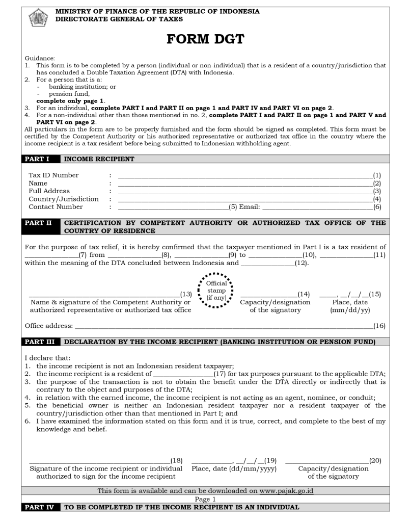 PETUNJUK PENGISIAN FORMULIR DGT INSTRUCTIONS FOR FILLING OUT FORM DGTÂ