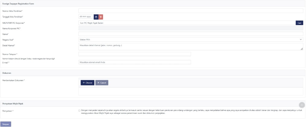 Berikut tahapan untuk melakukan permintaan wajib pajak badan dengan memilih jenis wajib pajak badan.