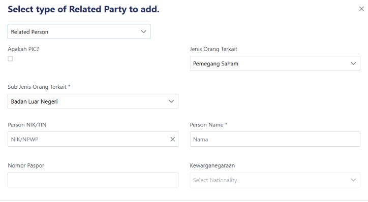 - Pilih Jenis Pihak terkait untuk ditambahkan